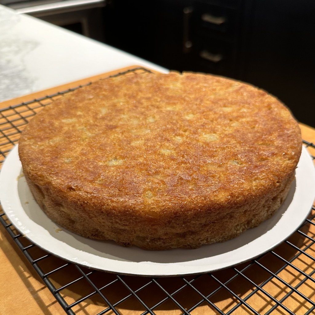 Straight out of the pan, the cake takes on a more traditional sponge cake look, but with a decidedly layered look. The choice is yours. You can see this in profile in the lead photo.
