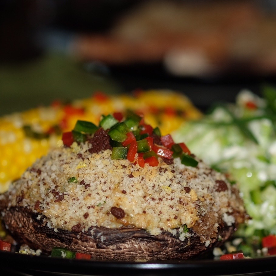 Cooking for others is one the the greatest joys of cooking. It combines the sense of accomplishment in the meal preparation with the warmth of sharing. Sur la Table’s mantra is that life happens around the table. No more so is that true than when friends and family make up the gathering. Crab Imperial is a favorite dish, featured in the photo as one of my favorite meals built on it – Crab Imperial in a Portobello mushroom cap, Feta slaw, roasted corn on the cob, and garlic and pecorino toast. One of the nice things about this dish, and the same is true of crab cakes, is that you can prepare the main course ahead of time and then store it in the refrigerator – for up to a day – allowing it to chill. Chilling makes it easier to handle, and also allows the flavors to get to know each other. Get those mushroom caps out and let’s go!