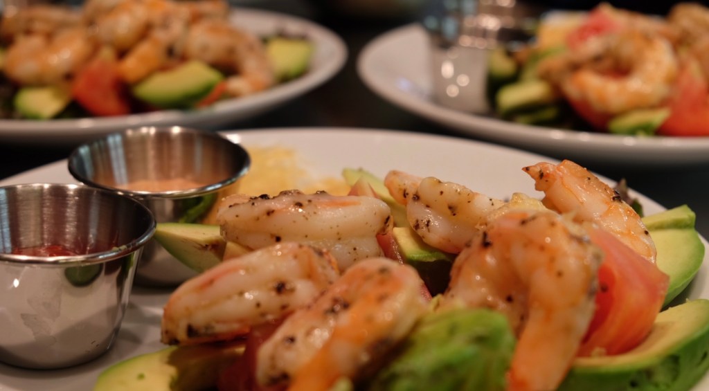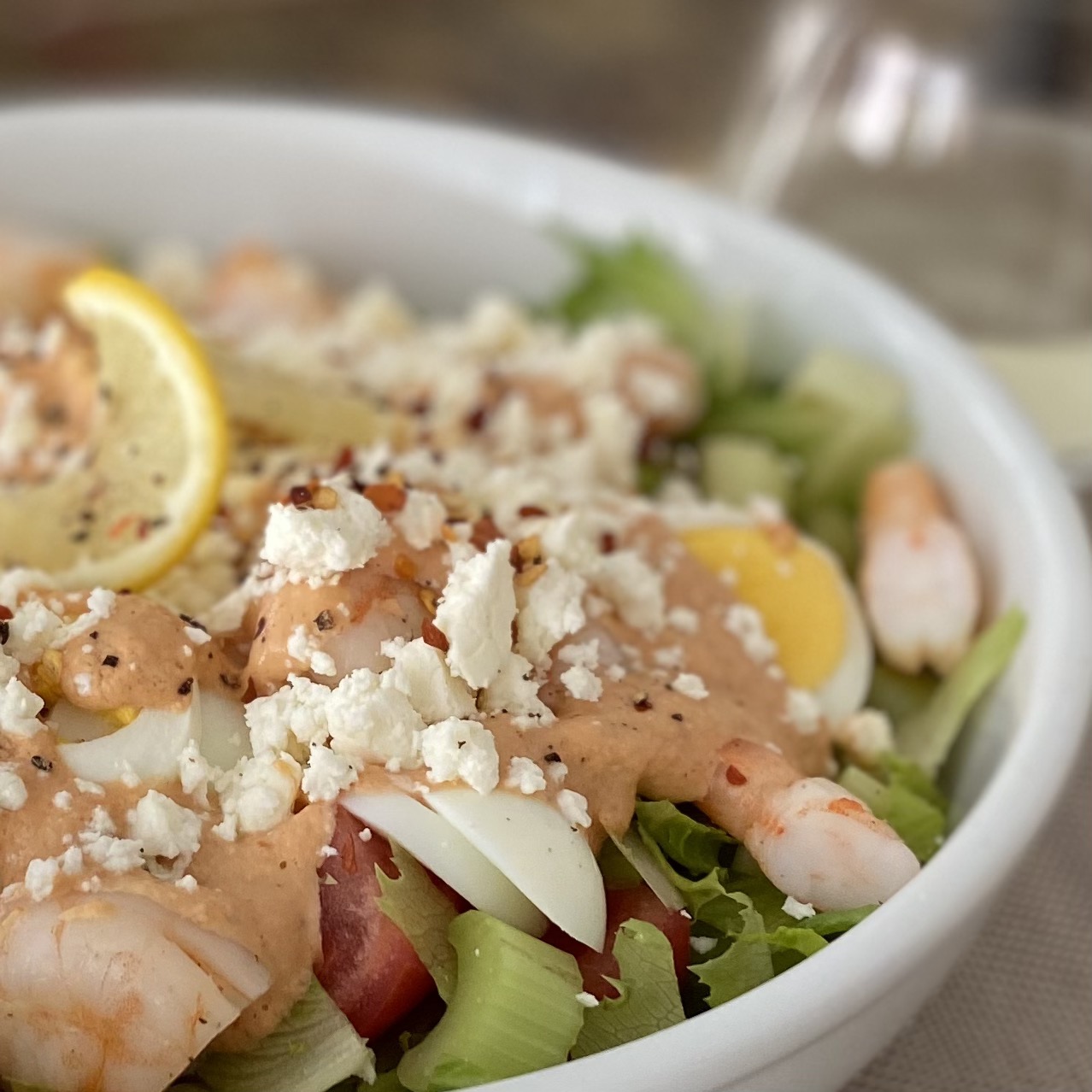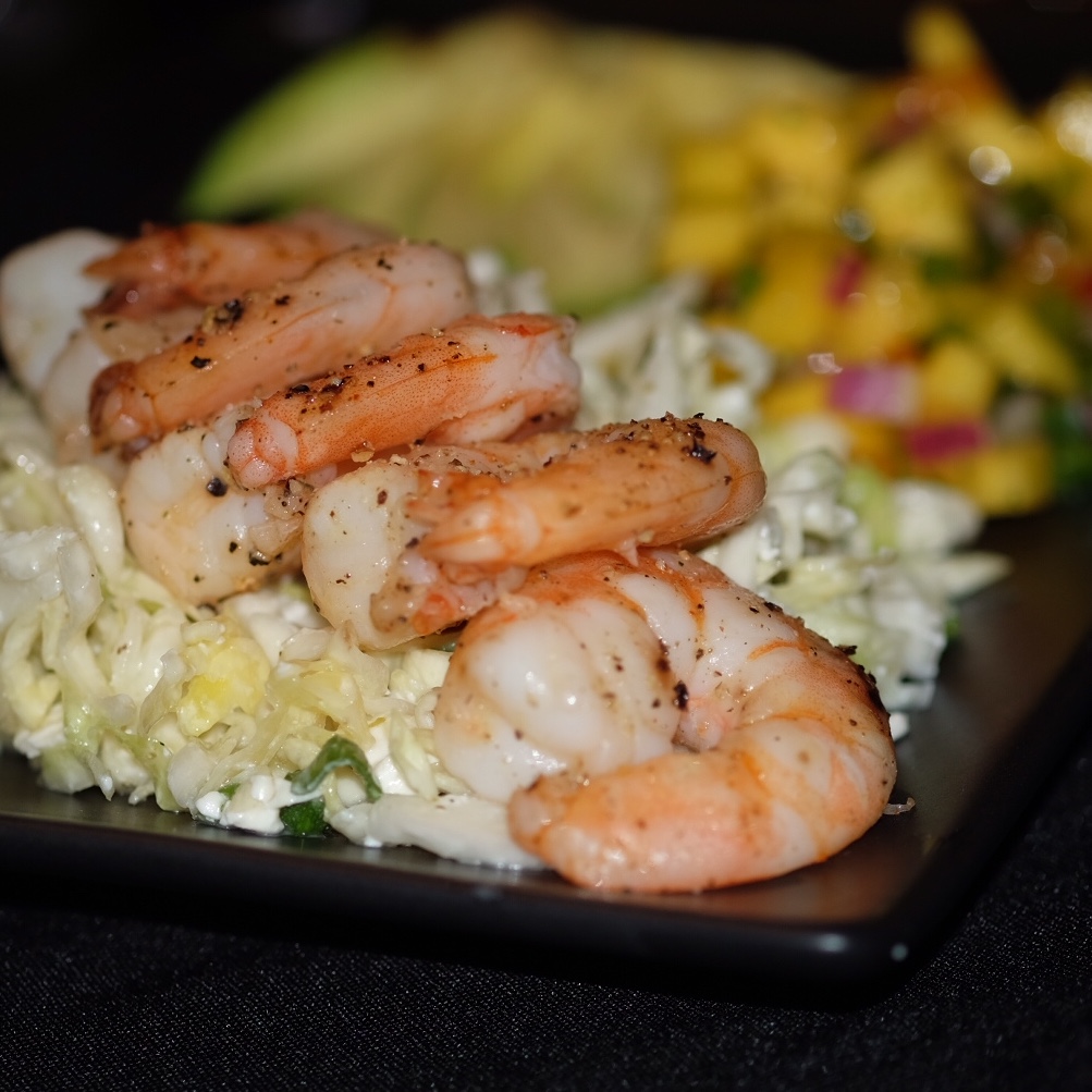 As pictured above, the shrimp are served with sliced tomato and avocado. Another favorite is to serve them salad style of a bed of Feta Slaw. So many possibilities.