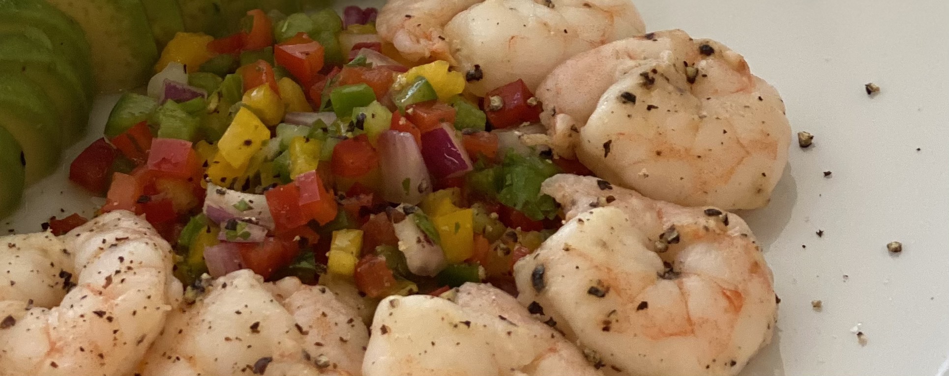 I’ll be honest, handling raw shrimp to get them ready to boil or broil or grill is not a favorite ‘in-the-kitchen pastime. Nor am I attracted to the primal pleasures of peel-and-eat shrimp. You can understand my delight when I found a recipe for roasted shrimp. Besides being easy and making for a great presentation, there is so much that you can do with it – add it to a salad, put it in a taco with some mango salsa, toss it with some tomato, avocado, and a tangy dressing. It comes pretty close to offering endless possibilities. My method for preparing shrimp merits a nod to Ina Garten, and her recipe for roasted shrimp cocktail. To serve 4 people I usually buy a pound of peeled and deveined shrimp (tails on or off – your preference, but depending on availability; I opt for off).