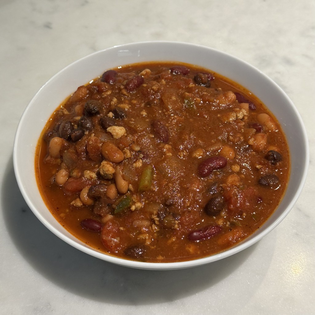 Simmer the chili, uncovered, until slightly thickened, about 30 minutes. If the chili gets too thick, add a splash of water to thin.